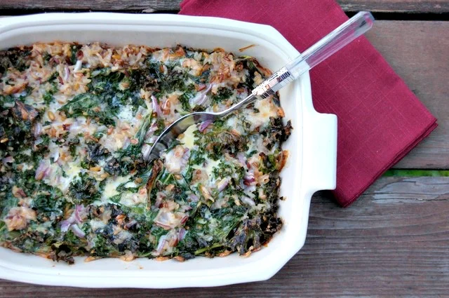 One of my favorites is this Chicken and Spring Greens Gratin that's super healthy and delicious. It's perfect to slice individual servings to keep in the fridge or freezer for an instant meal when you're short on time!